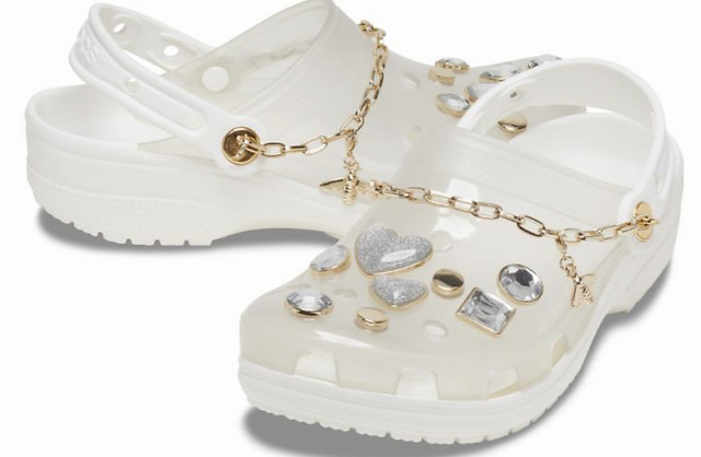 此次为杨幂特别定制款共有透明人造宝石洞洞鞋、透明人造宝石厚底老爹洞洞鞋以及天青石蓝人造宝石洞洞鞋三款可供选择,其零售价分别为538元、698元和498元。透明人造宝石洞洞鞋延续经典洞洞鞋精致简约的鞋型以及轻便舒适的特点,无缝注压工艺,线条流畅,久穿也不易变形。鞋身两侧梯形设计,排水透气,畅享清凉。细节上更体现出全新的设计感,以金色宝石智必星装饰鞋面孔洞,并搭配金色链条,凸显个性,简约趣味潮流。