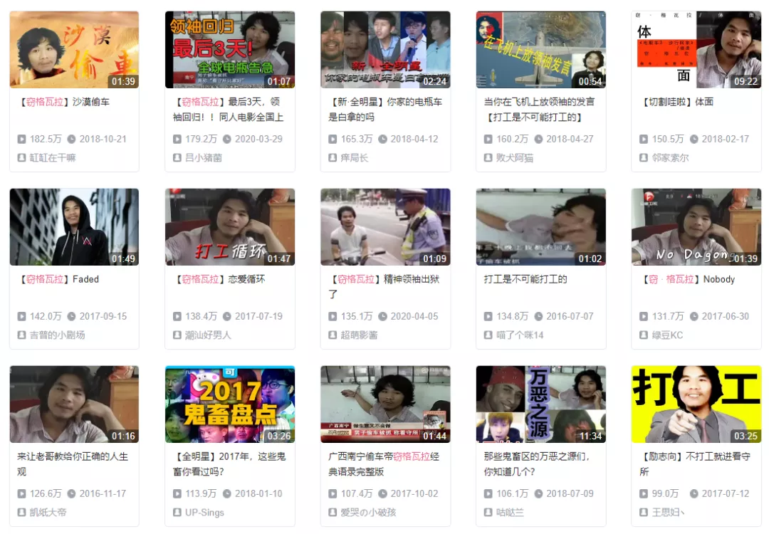 B站的吃瓜网友们得知窃格瓦拉一出狱就被众多网红公司竞价签约,价高者达到1500万之后,也开始了群体性的视频创作。短短几天,相关视频数量就有1000条之多。