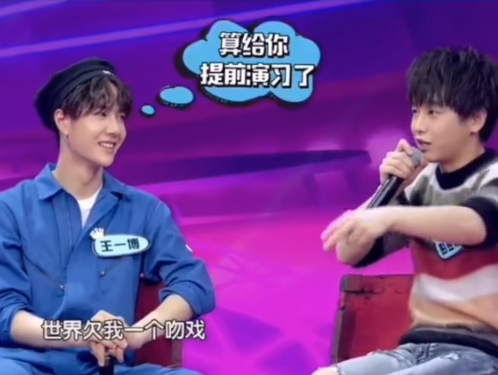 当看清王一博接吻对象是彭昱畅后,粉丝心中一万点暴击,为了满足彭昱畅多年没有拍吻戏的这个遗憾,在节目中提前演习了。而且王一博的表现力十足,让大家看到了这个男孩,在镜头下也有这么可爱的一面。随后彭昱畅,也表示世界欠我一个吻,让大家看到了这两位男孩的可爱之处。