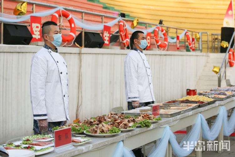 “红旗飘舞随风扬,我们的歌声多嘹亮……”一首《人民海军向前进》拉开了联欢会序幕,官兵们用嘹亮的歌传递出逐梦深蓝的热情和建功海疆的决心。伴随着歌曲串烧音乐响起,冷餐会正式开始,由基层单位带来的各色美食摆上餐桌,为在场官兵带来了一场视觉和味蕾的双重盛宴。