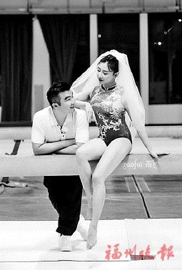 何雯娜梁超奥运婚纱照 穿体操服拍婚纱照