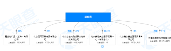 天眼查显示,周扬青旗下有6家公司,其中北京佰可贝糕商贸有限公司已经注销,目前为止,周扬青实际控制4家企业。2019年4月,周扬青出资35万,入股北京美加美业国际贸易有限公司,持股14%。可以看到,周扬青主要涉足的领域是零售业、商务服务业,与罗志祥名下公司的业务没有直接关联。