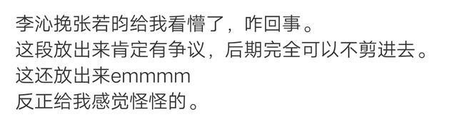 本来节目还挺顺利的,但在节目互动过程中,李沁不小心挽了一下张若昀,引起了网友争议。