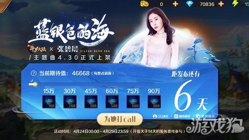 《新斗罗大陆》手游主题曲正式定名《蓝银色的海》,由实力歌手张碧晨演唱,歌曲将于4月30号在腾讯音乐旗下平台正式与大家见面,届时大家可通过QQ音乐、酷狗音乐、酷我音乐收听。当然,《新斗罗大陆》游戏玩家也有专属福利,24号起登录游戏,可在游戏内抢先试听主题曲片段哦!