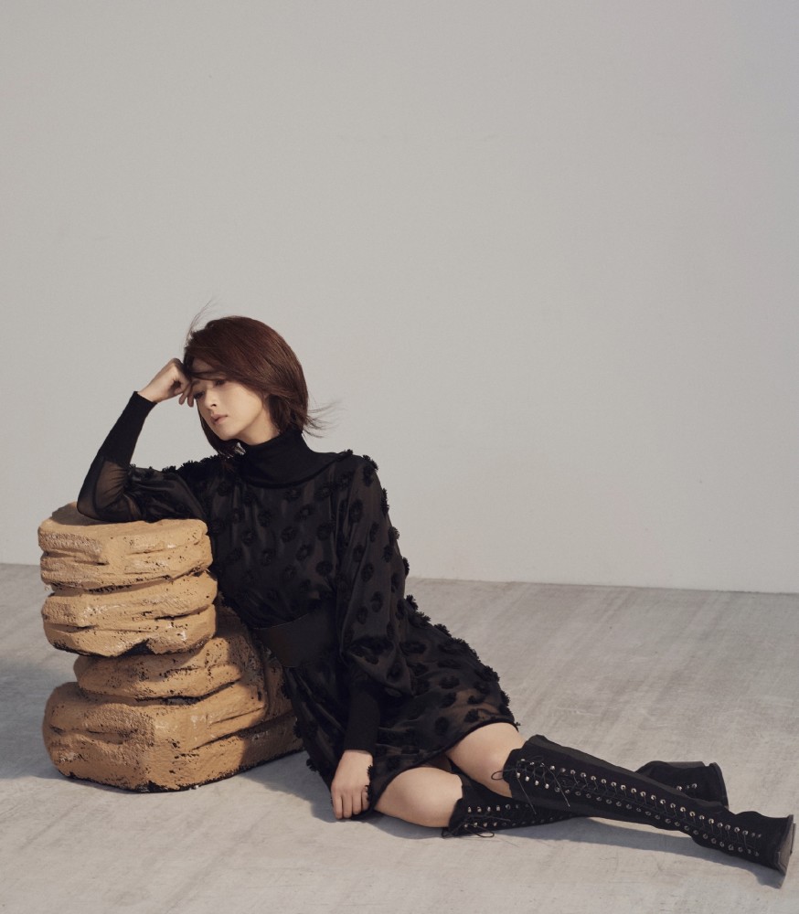 一个人发福以后,是真的会影响她的颜值,就像照片中的蒋欣,减肥成功后的她整体看起来真的是超级美女,这种穿衣风格在蒋欣平时的私服中很少见,但是这种风格也是特别的适合她,照片中的她穿着纯黑色的高领连衣长裙,整条裙子是半透明的黑色薄纱,但是在领口和袖口都拼接着黑色针织面料,两种不同材质的面料碰撞在一起更有看点,整件连衣裙上都是立体的蕾丝图案,让裙子变得更有设计感,下半身蒋欣选择了光腿搭配一双系带长靴,让身材显得更加妖娆,这种女人味儿十足的搭配真的是太适合蒋欣的气质了。