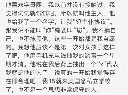 交往过程中还有严重暴力行为,他会用手机充电线抽女生,声称“在背后抽出一个X代表就是他的人”,看着也不像是第一次。