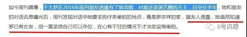 虽然 于大梦 一直声称在不知情的情况下无辜被三,但据朋友透露,她早就知道罗志祥有女友,为了能其 抢过来,还联合狗仔偷拍。