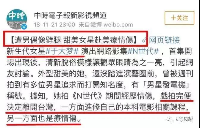 2018年据湾湾媒体报道,于大梦决定要离开台湾,前往美国进修。