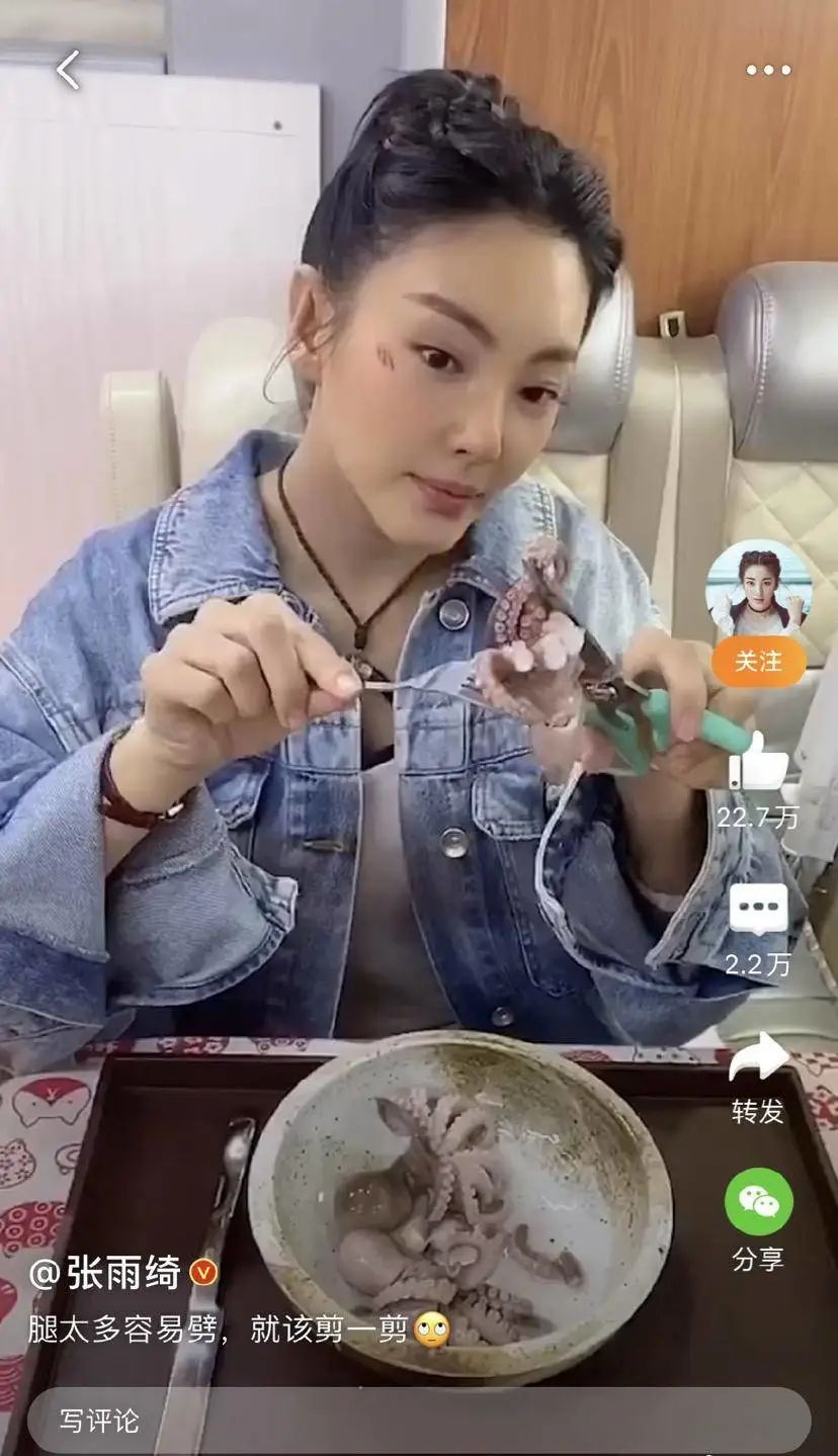 性格火爆的张雨绮更是晒出一段剪八爪鱼的视频,配文“推太多容易劈,就该剪一剪”,疑似内涵罗志祥劈腿。