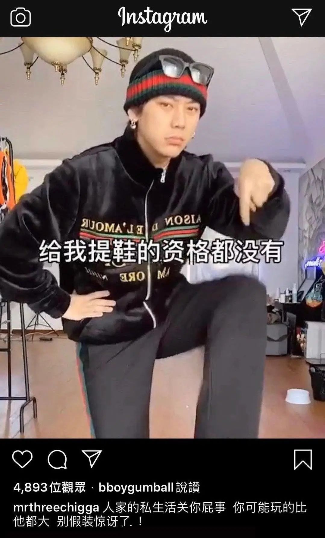 《这就是街舞2》罗志祥战队选手三儿录视频称: 人家的私生活关你什么事,你可能玩得比他都大,别假装惊讶了……