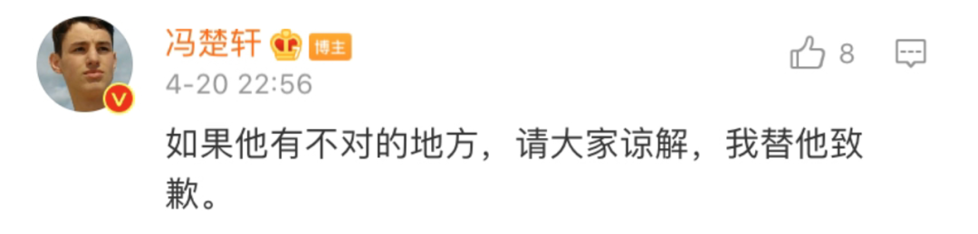 更有栩栩华生传媒(旗下《T》《NYLON》等杂志)创始人、总编辑冯楚轩 为屈楚萧的人品背书,替他道歉。