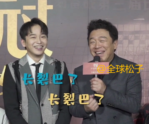 在陈可辛说完之后,黄渤立马接话“真的,你想想,连这长相带着身高多难啊”。随后有人提议黄渤和彭昱畅现场来一张合影,黄渤再次发挥了自己的幽默细胞,自嘲道“这也是一个故事,就是说我们都想成为梦想中的自己,慢慢慢慢也有一种可能性叫做长裂巴了”,全场笑声一片,彭昱畅的表情则“复杂”一些,更像苦笑,这时还有人在一旁让彭昱畅笑得开心点,宽慰他不要想太多。