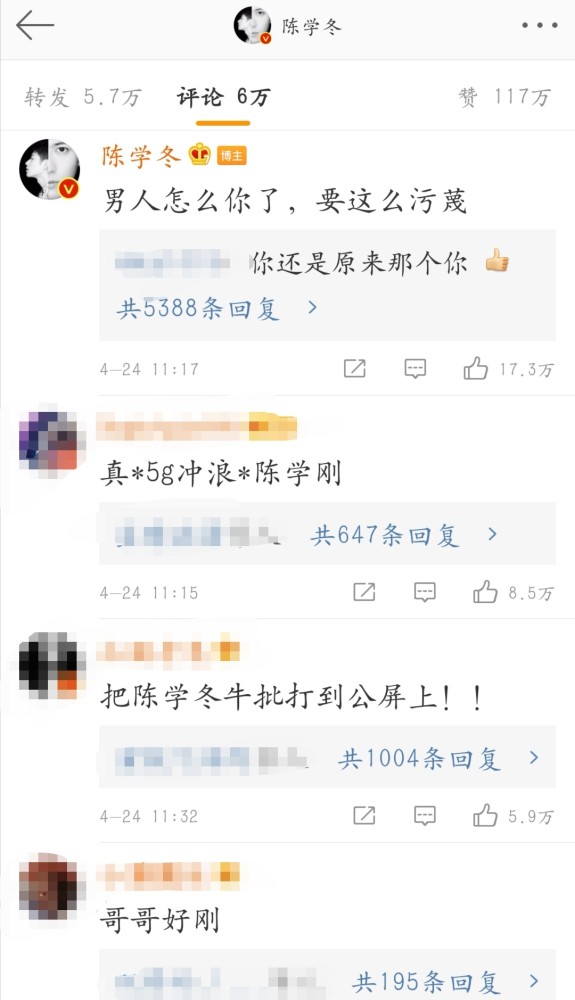 色痞的发声激起了众怒,4月24日11点,陈学冬在社交平台公开回怼色痞的发言,直言“别一天天给性别甩锅。”之后更是在评论区发问“男人怎么你了,要这么污蔑”,可见陈学冬言语虽然激烈但是句句在理,而陈学冬的发声也得到了许多网友的支持,大家纷纷为陈学冬的留言点赞。