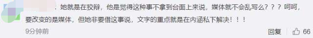 但也有人觉得并不是这样的“她就是在狡辩,他是觉得这种事不拿到台面上来说,媒体就不会乱写么???呵呵,要改变的是媒体,但她非要借这事说,文字的重点就是在内涵私下解决”。