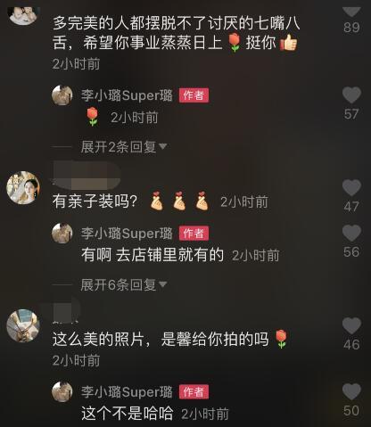 李小璐在评论区经常跟网友互动,拉好感,被赞:“不管怎么样,自己挣钱自己花总归是最有安全感的,女人就该如此”,李小璐说:“做最好的自己”,被有部分黑粉说在她直播间买的包裹没收到,李小璐又谢另一位粉丝说了大实话,人家都收到了包裹,言外之意说那个黑粉无理取闹。李小璐还提到了女儿甜馨,还包括跟甜馨一起拍的亲子装,离开了贾乃亮之后,李小璐越发的强大!