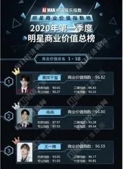 艾漫数据显示,2020年第一季度明星商业价值总榜排名中,易烊千玺夺冠居榜首;