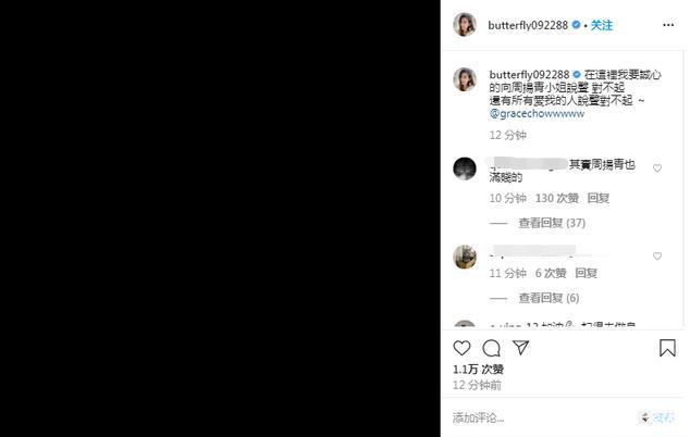 如今蝴蝶姐姐直接向周扬青道歉,似乎也是印证了网友的猜测,不过据悉,罗志祥从未公开承认过与蝴蝶姐姐的恋情。而周扬青虽然与罗志祥谈了九年恋爱,但好在及时止损两人还未步入婚姻,希望她能早日走出阴影,迎接新生活。