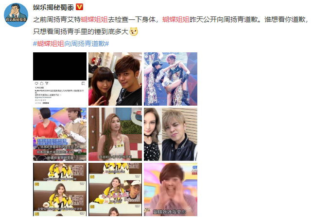 据悉,周扬青之前还经常在社交平台为蝴蝶姐姐发文宣传,两个人之间经常互动,然而蝴蝶姐姐与罗志祥之间的关系却似乎一直都是这么好。