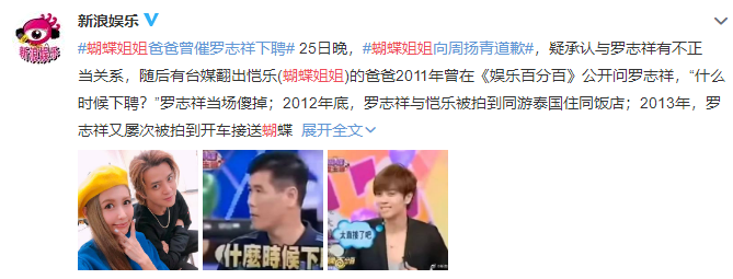 4月25日晚,沉默了近2天的蝴蝶姐姐在社交平台发文向周扬青道歉,疑似承认了自己与罗志祥之间存在长期不正当关系,引起网络热议。