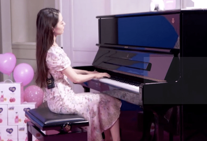 吉娜在现场还表演起了钢琴弹奏,从侧面看过去也是能够感受到她的好身材,平常我们在坐着的时候腹部都会呈现出很多的赘肉,而我们却能感受到吉娜浑身上下都是没有一丝多余的赘肉,这样的身材和腰围真的是真实存在的吗?