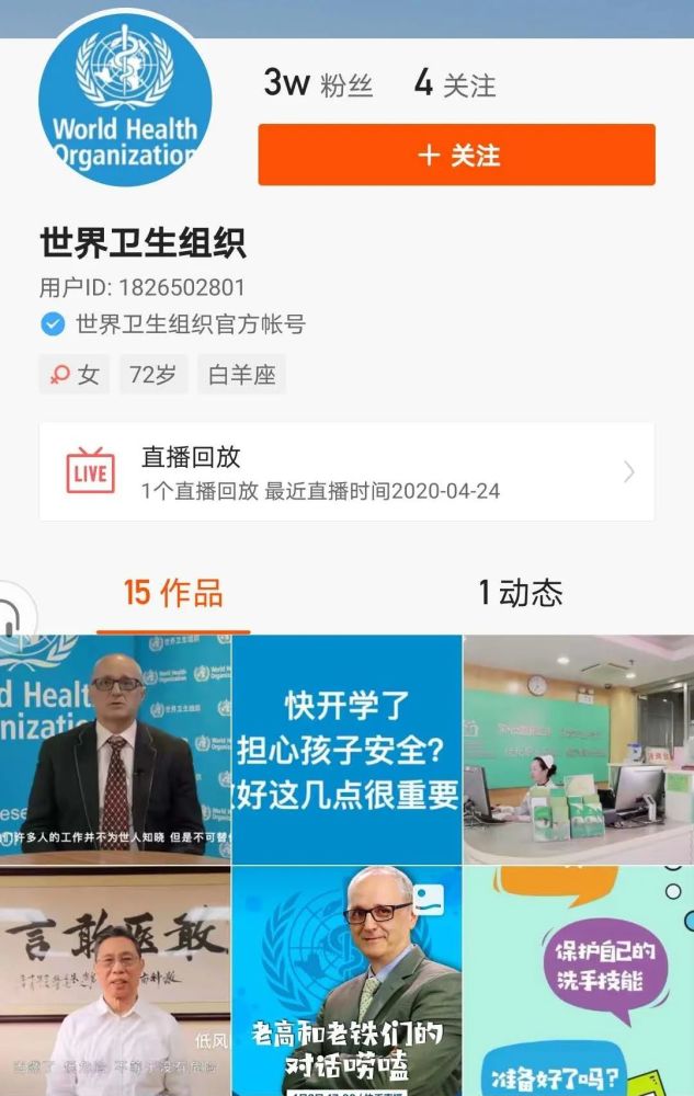 世界卫生也已组织入驻快手,官方账号不断发布短视频和图文信息等作品,聚焦科普防疫知识。