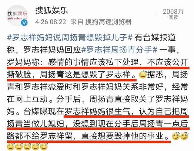 起因是,在台媒的报道中,罗志祥妈妈痛心疾首地表示,感情的事应该私下处理。