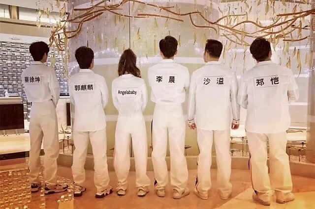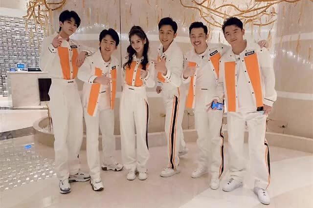 从大合照来看,Angelababy杨颖和“大黑牛”李晨双双站在C位,也足见这两人在这档节目里的地位了~成员们同穿橙白拼色款的运动装,郑恺看起来最是洒脱随意,而蔡徐坤则和杨颖一样选择将外套塞到裤子里,不仅能勾勒出细腰轮廓而且还能显现出大长腿的优势~