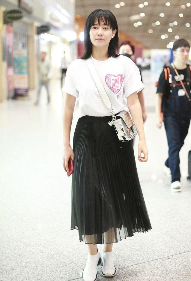 谭卓近照曝光,36岁的她T恤配皮裙元气满满,抱着小男孩开心极了!回顾她之前走机场穿白色T恤的打扮,T恤配半身裙看不出有辣妈的味道,一身经典黑白配温柔减龄成为同龄人穿搭示范。