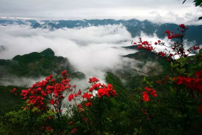 4-5月,苏马荡的杜鹃开始了一年一季的绝色时光。青山松翠,杜鹃火红,站到高处远望,常年青绿的山峰此刻被热烈的色彩占领,若是遇上云海涌来,这杜鹃花海便如生长在仙境一般,远近飘忽。待到五月,漫山满海的杜鹃开了个遍,姹紫嫣红,开出了一条百里“杜鹃长廊”。