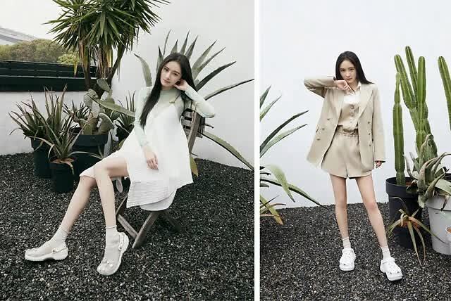 看到这里,不知道有多少小伙伴跟我一样,对洞洞鞋跃跃欲试了?不过大家先别急着上脚,毕竟杨幂能搭配得洋气好看不雷人,也是有自己小妙招的: