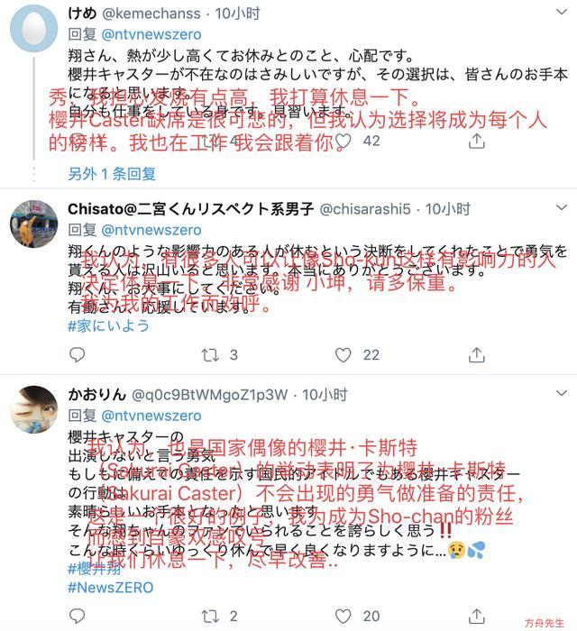 目前节目《New Zero》更新动态,表示樱井翔居家隔离很安全,而网友对于他主动隔离,观察自己身体变化的行为很是赞许,纷纷表示:勇于休息,谢谢ZERO的每一个人。我认为很多人由于樱井勇敢的判断而获得了“休息的勇气”!这是每个人的榜样。樱井翔请假是很可惜的,但是我认为他的作为很负责任,是每个人的榜样。这样有影响力的人物都能够决定请假,请多保重。