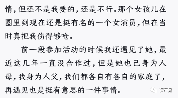 后来与女演员的交往不顺分手了,他说自己被女演员伤得够呛,这是来自女演员的“致命摧毁”。