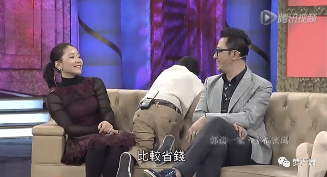 这档节目里呈现出来的夫妻状态,跟郭涛书里写得差不多,郭涛夸老婆节俭省钱,有传统女性的美德。