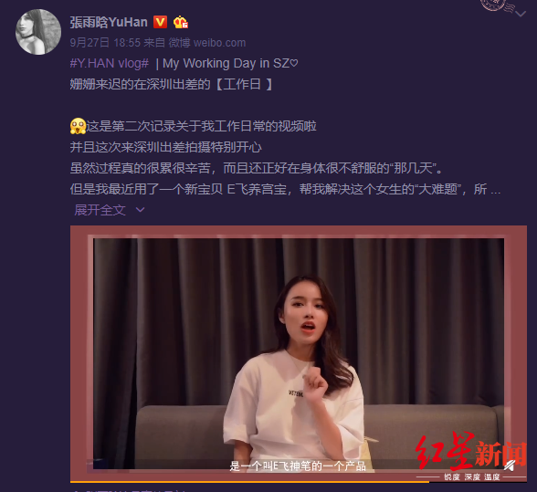 9月27号晚上,博主张雨晗和作者公司合作的vlog视频如约播出了。