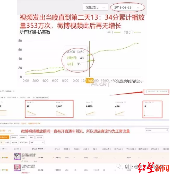3,昨天的表现我想大家都应该很清楚,视频中有2个数据,我表示很费解。第一观看数量,内容里面明确推荐了我们的产品并且链接了我们的淘宝店铺,截至目前超过350万阅读量,但我们的店铺的进店流量跟往日没任何变化(无关于成交转换率,请不要偷换概念,这里指进店流量)。第二,截至目前超过一千条评论,评论内容超过50%都说已经购买,或者已领卷,表达强烈的购买意愿,但是店铺流量跟往日没有任何变化……