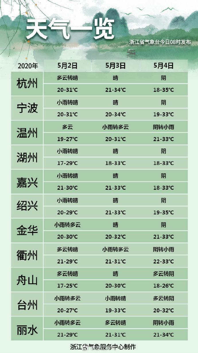 看完最高气温,再来看看最低气温——今天早晨全省最低温度:20℃-22℃。今天白天浙中南地区阴有阵雨或雷雨,局地有短时暴雨;其他地区阴有时有阵雨,傍晚起雨渐止转阴到多云。今天夜里到明天:浙中南地区多云到阴部分有阵雨或雷雨,明天夜里雨渐止转阴到多云;其他地区多云。