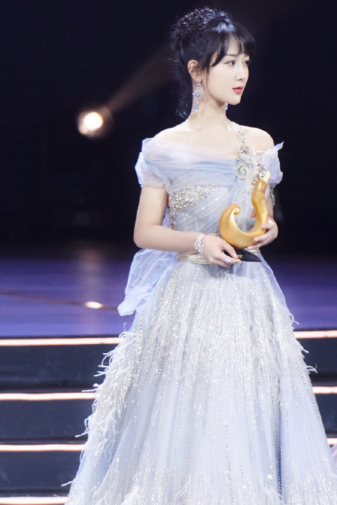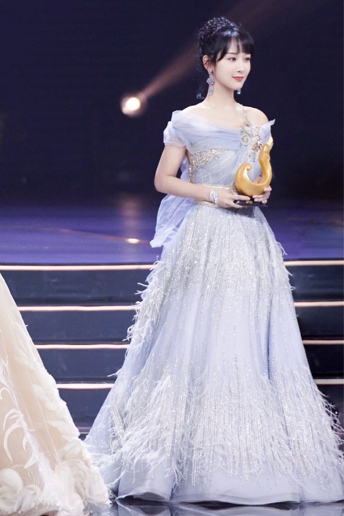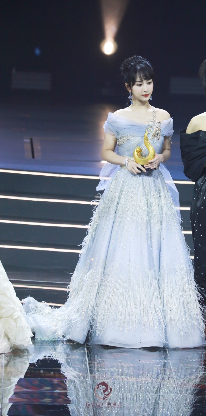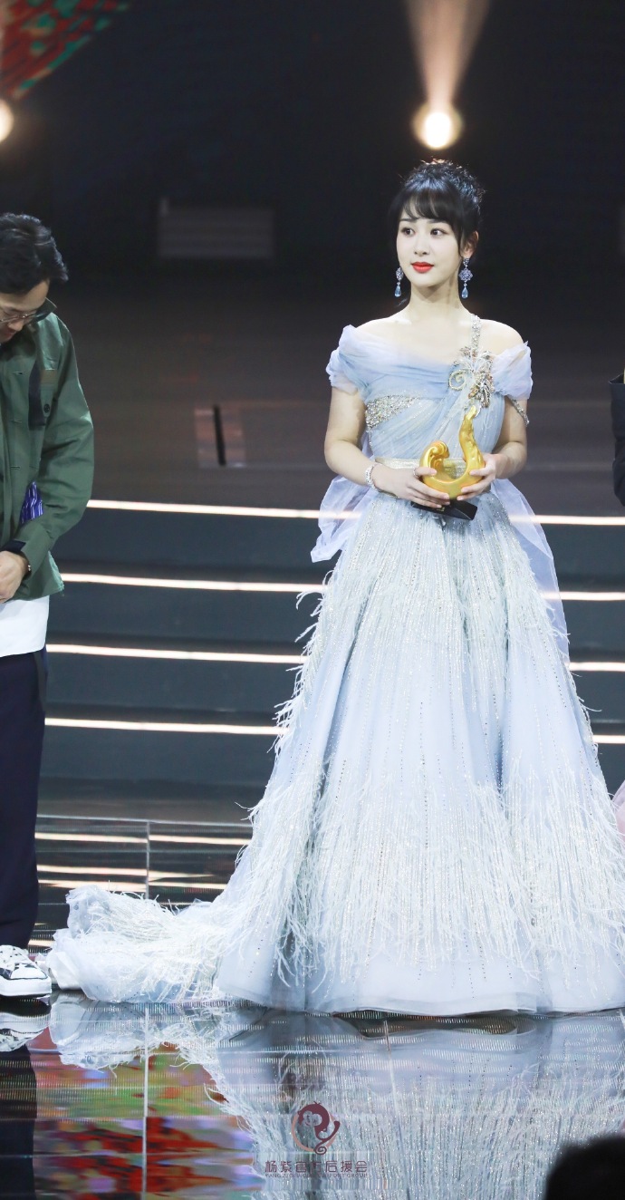 11日,2019微博之夜在北京水立方举行,杨紫穿着一袭水雾蓝羽毛纱裙亮相现场,眼眸里流转着是少女独有的温柔,举手投足亦有湖中天鹅的骄傲与明媚,怎么看都是小仙女!