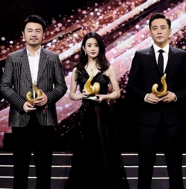 头脸小,便是女演员的第一加分项。所幸,赵丽颖之前和内娱两大巨头有过同框,我们不用虚拟幻想就可直观得感受一下比例,雷佳音和刘烨的头,好似要比赵丽颖大上两圈!
