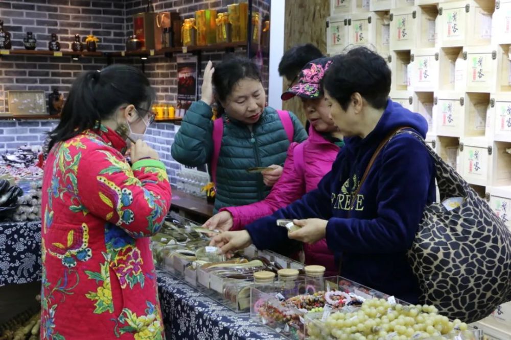 游客们在景区服务中心购买纪念品