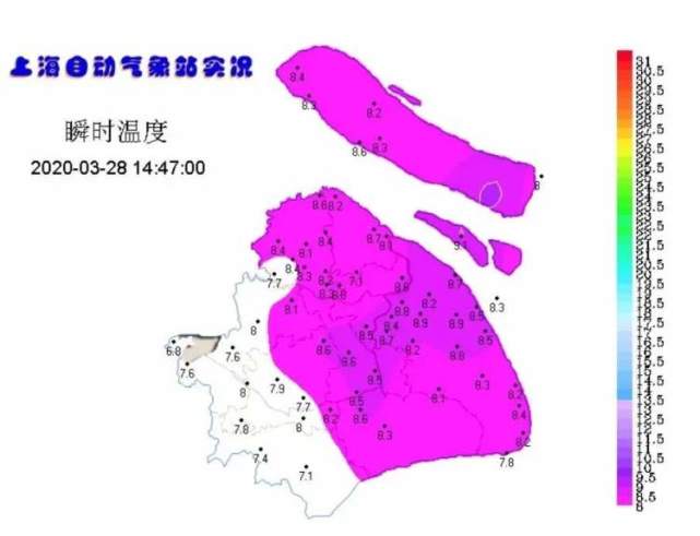 昨天是三月以来上海最“湿冷”的一天,累积雨量25.1mm 白天最高气温8.9℃(均以徐家汇站为例)。