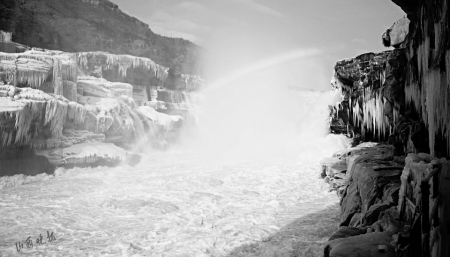 山西壶口瀑布冰挂彩虹 壶口瀑布美如画