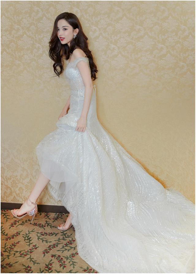 落地长裙的效果更加惊艳,一直以来深受女性的喜爱,白色看起来干净简单,不过银白色更有质感,在整体的效果上呈现出惊人的高级感。古力娜扎穿银白色的落地长裙,一字领的领口修饰胳膊上的赘肉,一头蓬松的长发做成大波浪,裙摆的银白色细闪仿佛银河落下一般,搭配一双一字带的高跟鞋,也能够衬托不俗的气质,效果真是太惊艳。