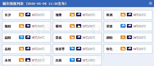湖南各城市天气预报。(数据来源:天气管家客户端)