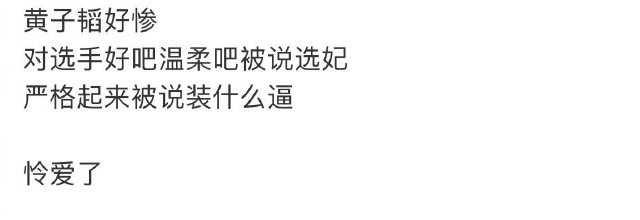 网友说:“黄子韬好惨,对选手温柔被说是在选妃,严格起来被说在装,怜爱了。”你认为呢?