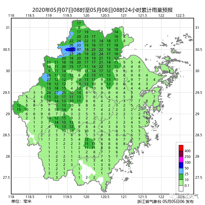 来自浙江省气象台的预报