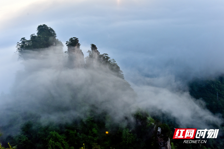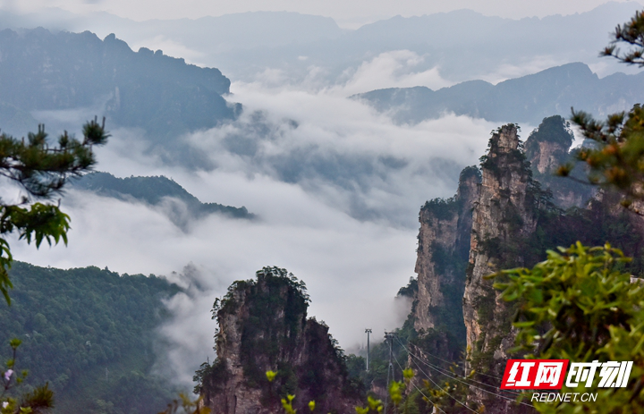 ▲从天门山国家森林公园云梦仙顶放眼望去,似天幕帷幔,如临大海之滨。摄影/伍文 张潘