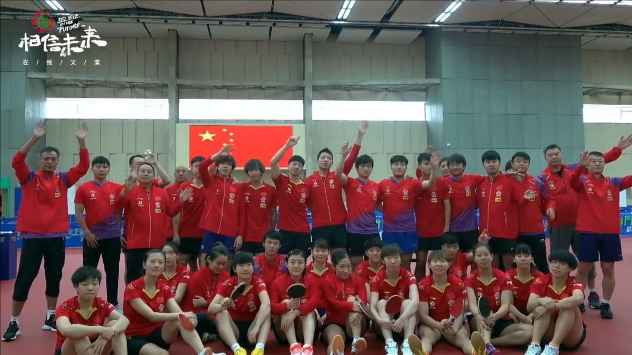 国乒队参加“相信未来”在线义演。