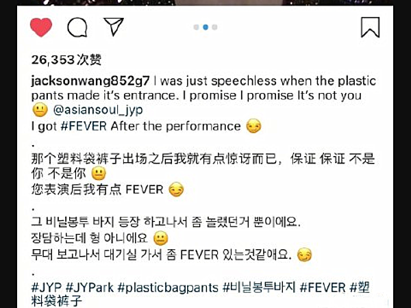 而就在网友们看着老板质问爆笑的时候,王嘉尔立马回应说是因为看到塑料裤子才那么震惊的,绝不是因为朴振英,并且还连发三国语言证明自己的清白,这满满的快溢出屏幕的求生欲,王嘉尔也太可爱了。