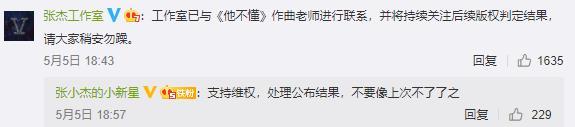 张杰工作室也在第一时间做出回应称“工作室已与《他不懂》作曲老师进行联系,并将持续关注后续版权判定结果,请大家稍安勿躁。”“尊重音乐作品原创,尊重依法维护合法权益!”