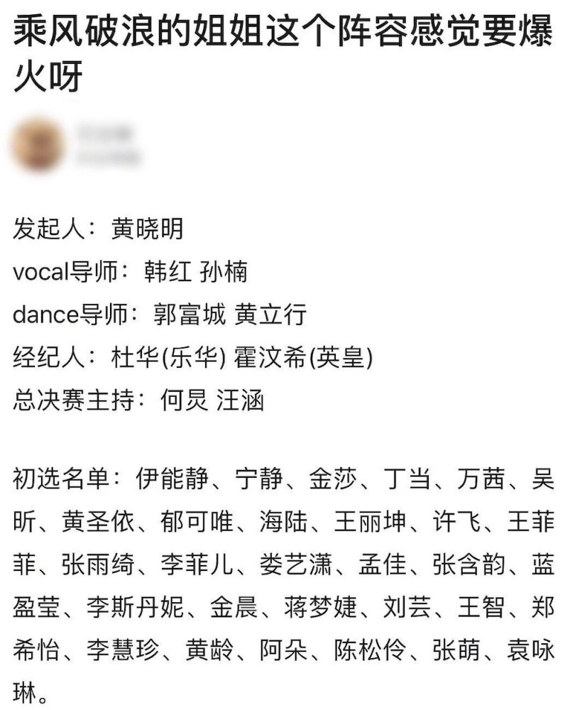 原来,芒果TV近期策划了一档节目,叫做《乘风破浪的姐姐》,目前已经在官方渠道招募观众了,预计5月份就会播出。